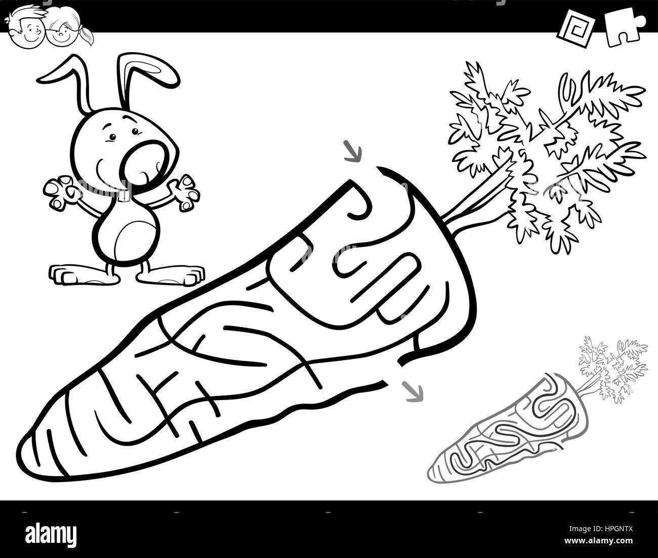 Ilustración De Dibujos Animados En Blanco Y Negro De Educación Laberinto O Juego De Laberintos Para Niños Con Página Para Colorear De Conejo Y