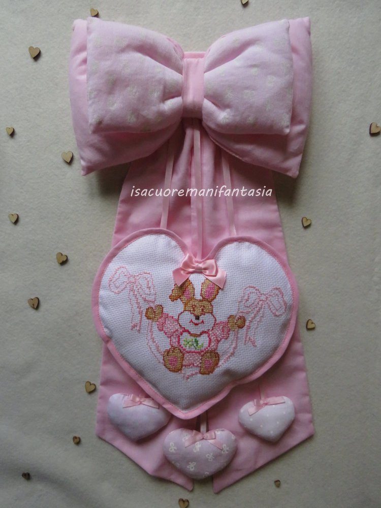 Fiocco Nascita Bimba Con Cuore Punto Croce